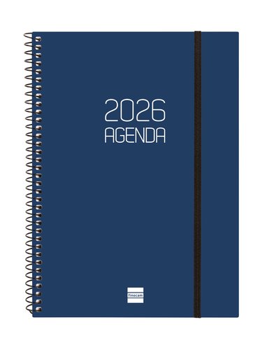 AGENDA ANUAL (2026) FINOCAM ESPIRAL OPAQUE ESPIRAL tapa PP con GOMA E10 155x212 S/V AZUL
