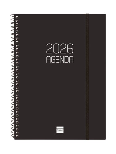 AGENDA ANUAL (2026) FINOCAM ESPIRAL OPAQUE ESPIRAL tapa PP con GOMA E10 155x212 S/V NEGRO